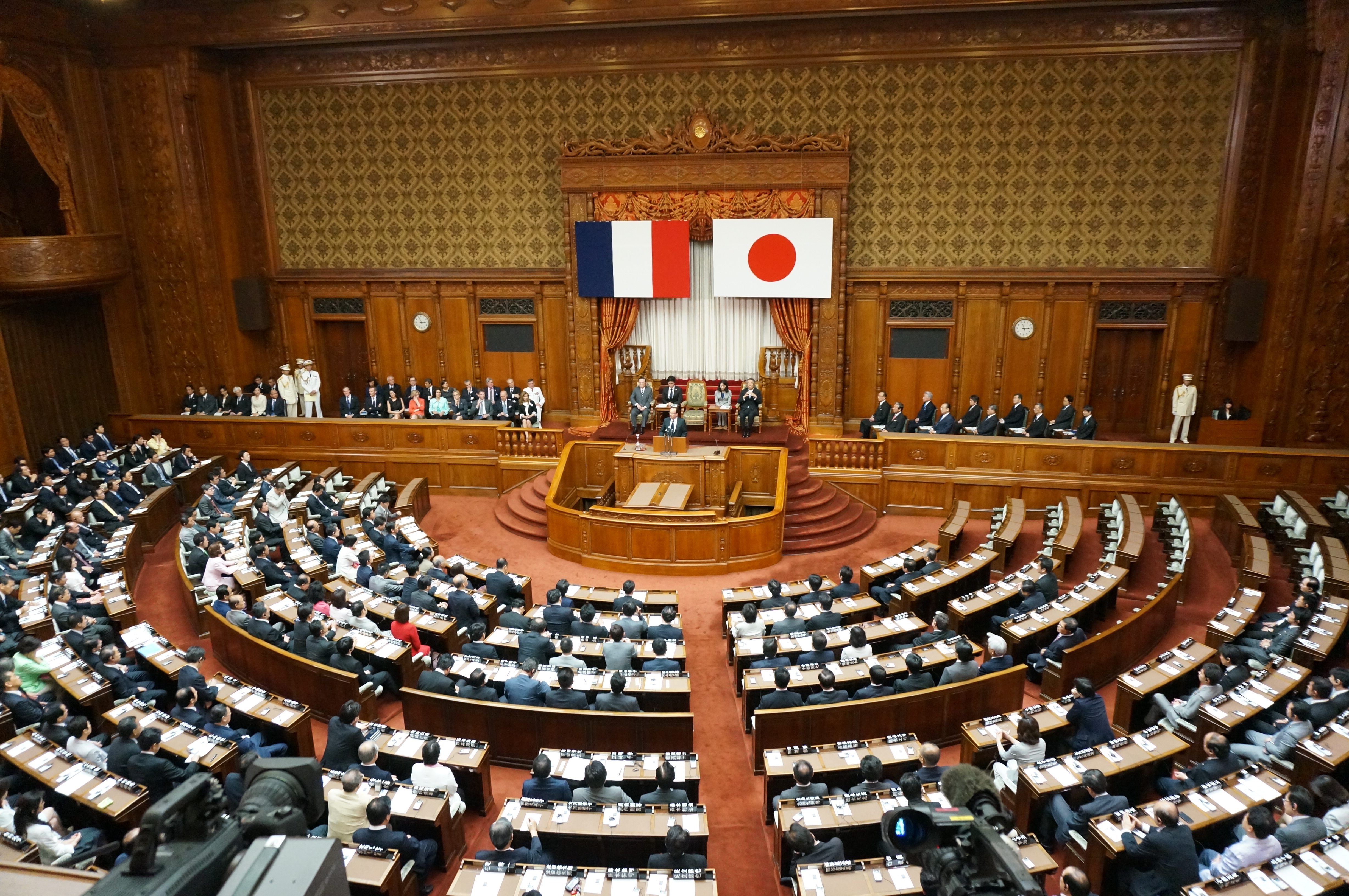 Photos prises lors du Voyage Officiel de François Hollande an Japon en juin 2013, ci dessus lors de son discours à la diète de Tokyo
